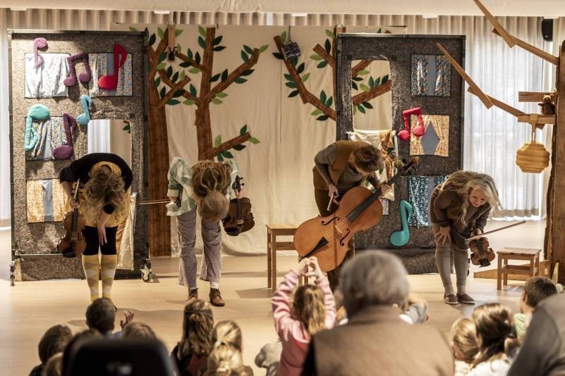 Bij het horen van de eerste noten begon een bewoner al meteen enthousiast mee te dirigeren. Anderen zaten vol spanning te wachten op wat er zou gaan gebeuren. Het theatrale optreden van Tink en de overige spelers nam bewoners en kinderen mee in het verhaal van de ontsnapte noot. Een noot die wordt gestolen door een eekhoorn, in de veronderstelling dat ook deze noot eetbaar is — zich niet realiserend dat zonder deze noot het concert niet kan doorgaan.