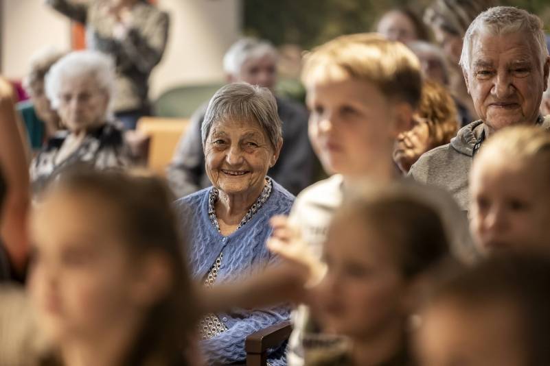De aandacht van de bewoners ging niet alleen uit naar het optreden, maar ook naar de kinderen die bij ieder liedje spontaan meezongen. De brede lach op de gezichten van onze bewoners is ontroerend om te zien.